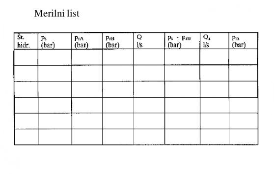 4. Po Tabeli 1 (v prilogi) se odčita količino vode (l/s), ki izteče iz ročnika pri tlaku prA. Ta količina se vpiše v razpredelnico (Merilni list) pod Q.