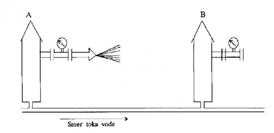1. Izmeri in zapiše se statični tlak na hidrantu A in B (to je tlak ps (bar)).