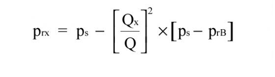 6. Če je treba, se z enačbo (2) izračuna, koliko vode bo mreža dajala, če se pusti, da tlak pri iztekanju vode pade pod vrednost pr.